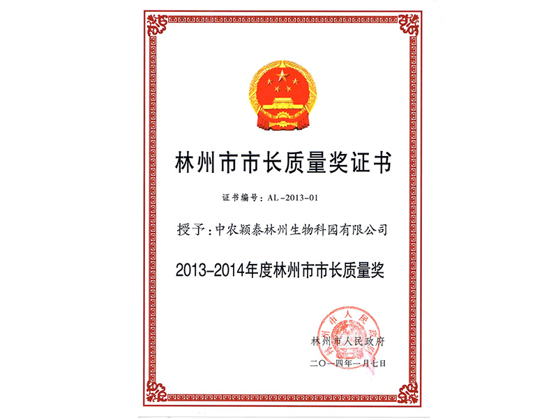 林州市市長質量獎證書