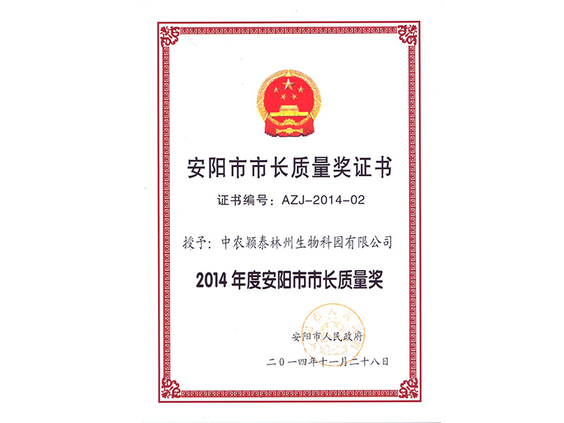 安陽市市長質量獎證書
